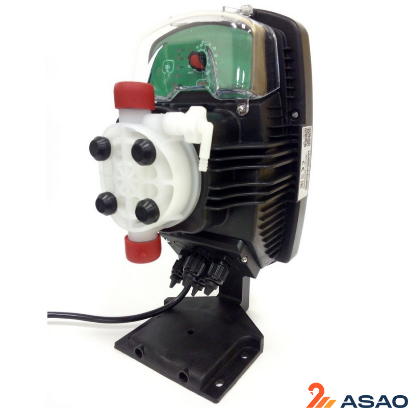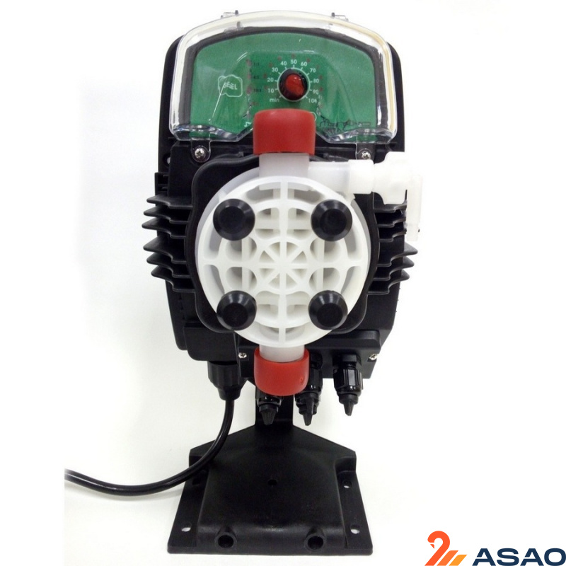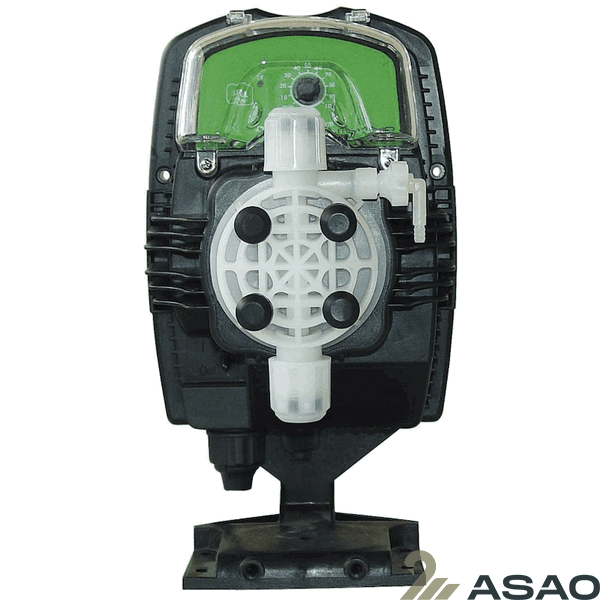 Электромагнитный дозирующий насос Mytho HP — аналоговый дозировочный насос с постоянной скоростью дозирования, регулируемой вручную, и возможностью внешнего управления сигналами: пропорционально аналоговым (4-20 мА) или цифровым (от импульсного расходомера) с 6-позиционным переключателем: три в режиме деления (1:1, 4:1, 10:1), один в режиме умножения (1 х N, N = 1...10), один для пропорционального 4–20 мА сигнала и один для постоянного дозирования. Шаговая функция регулируется микропереключателем.