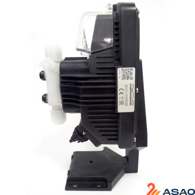 Электромагнитный цифровой мембранный насос Mytho HG с ручной регулировкой скорости дозирования и возможностью внешнего управления пропорционально аналоговым (0/4-20 мА или 20-4/0 мА) или цифровым (от импульсного расходомера — 1:N или N:1) сигналами.
