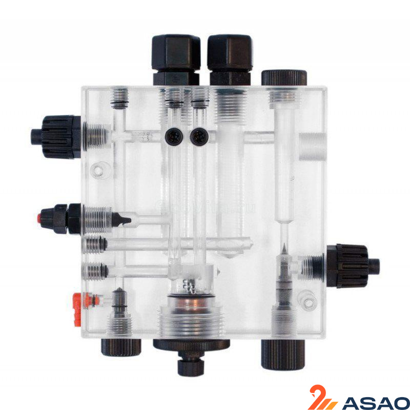 Встроен ниппель для взятия отбора проб и клапан впрыска, для подачи на измерительный датчик. Предусмотрена установка 2-х зондов (уровня рН и RedOx, диаметром 12 мм).