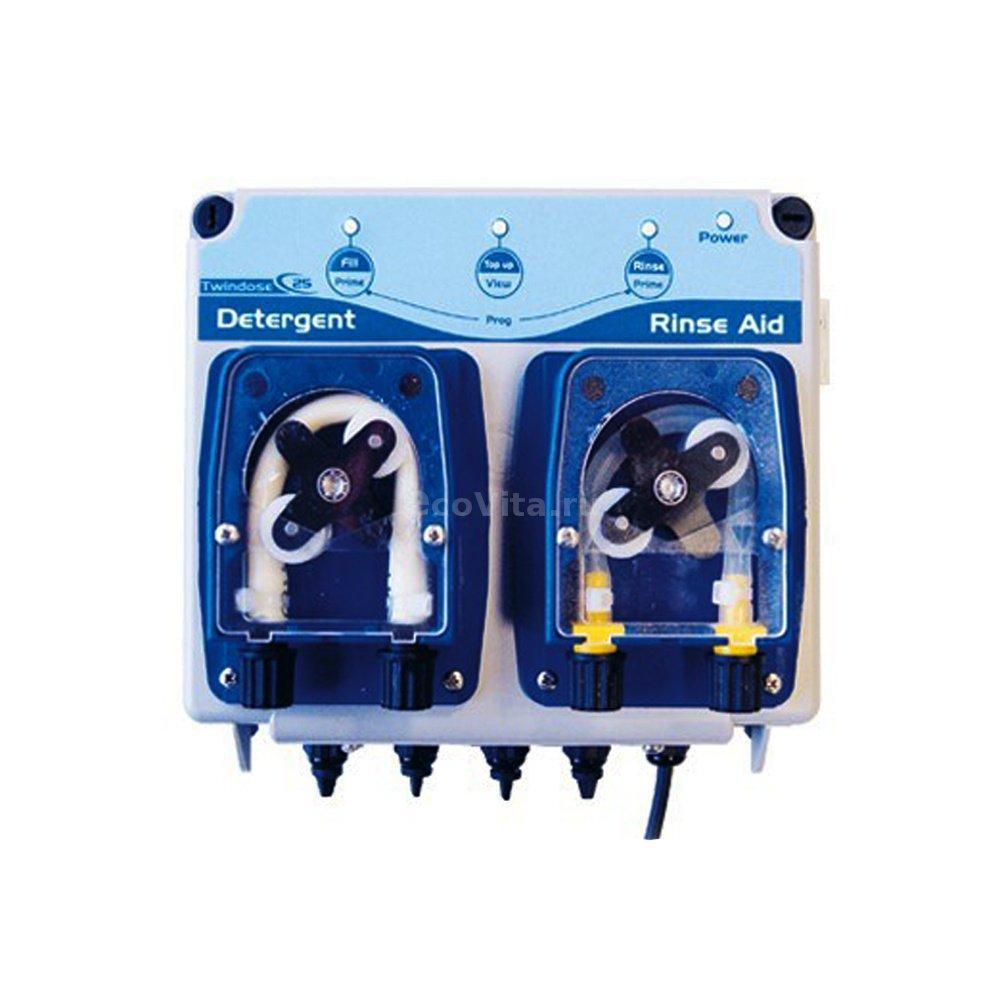Дозирующая система Seko Twindose 25 с двумя насосами используется для автоматического дозирования моющего средства и ополаскивателя в профессиональных посудомоечных машинах с одним или двумя электромагнитными клапанами.